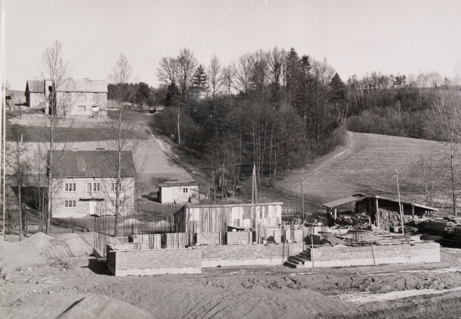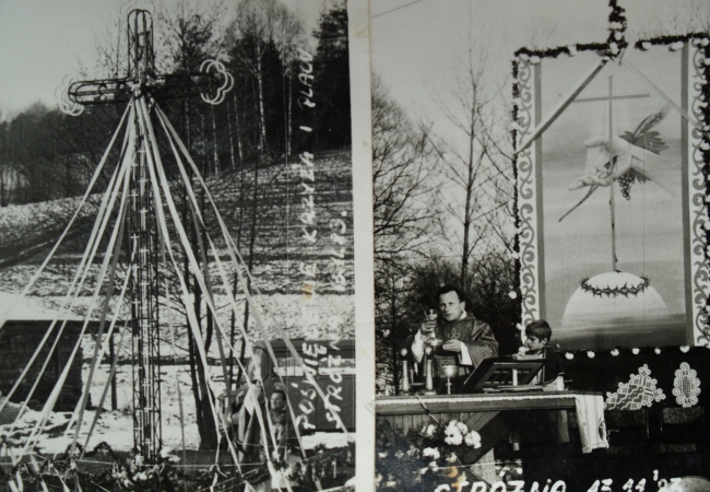 Po zgromadzeniu koniecznych dokumentów - w 1982 roku - rozpoczęto prace budowlane. Uzbrojono stalą i zalano betonem tzw. poziom zerowy kościoła. Krzyż ze stali żebrowanej, wykonał miejscowy kowal Stanisław Góra. Plac, rozpoczętą budowę, a przede wszystkim krzyż poświęcił 13 listopada 1983 r. ówczesny proboszcz parafii ks. Stanisław Chrzan.